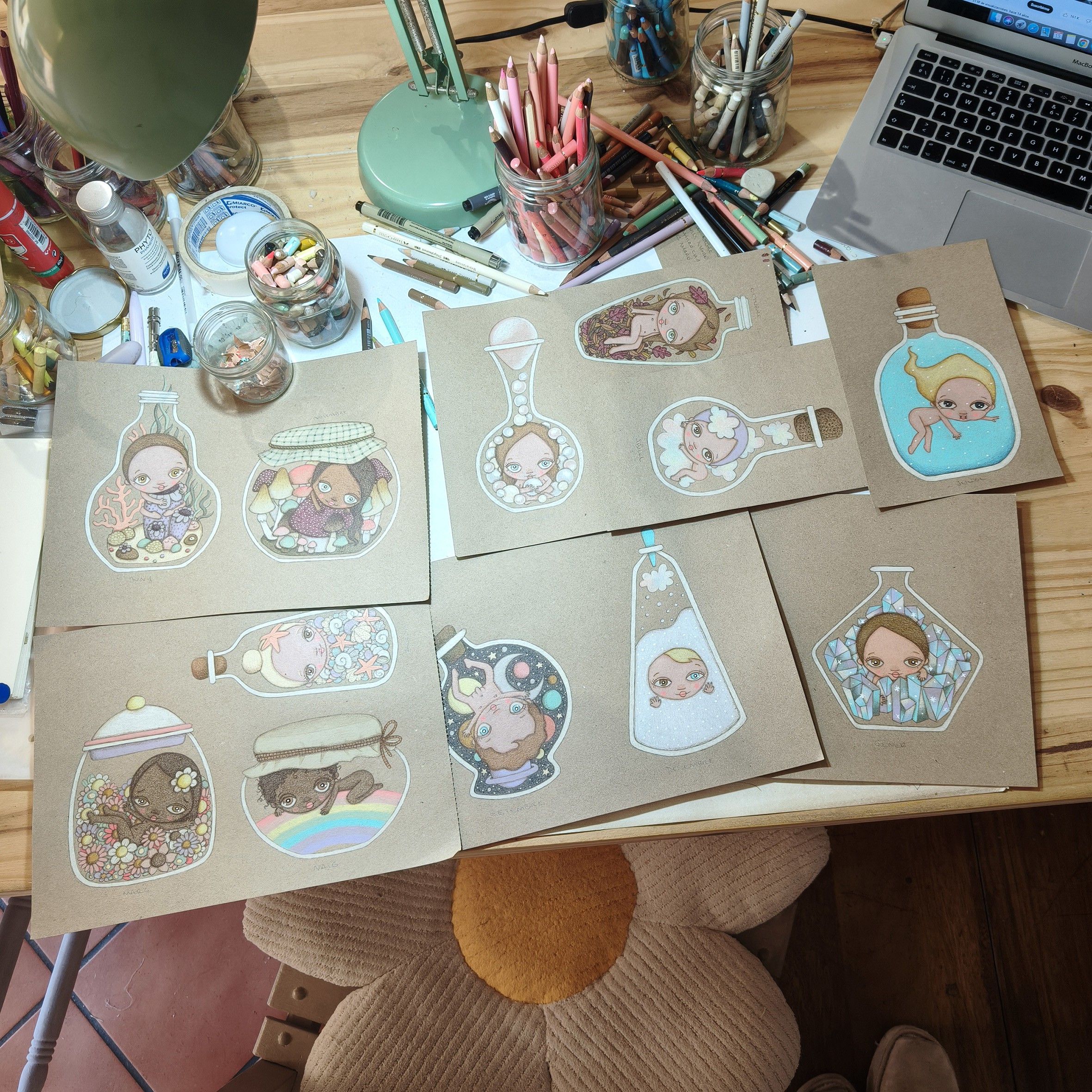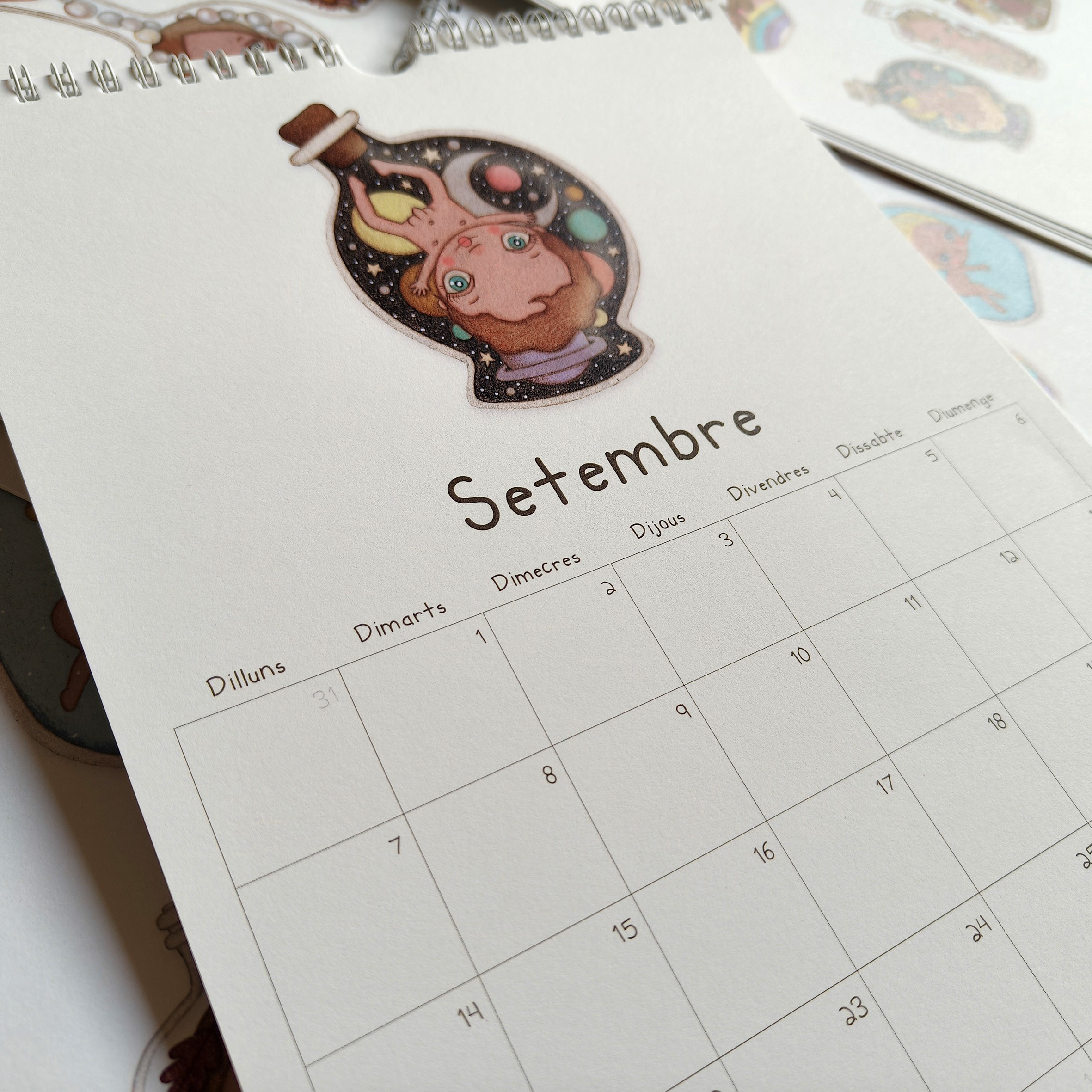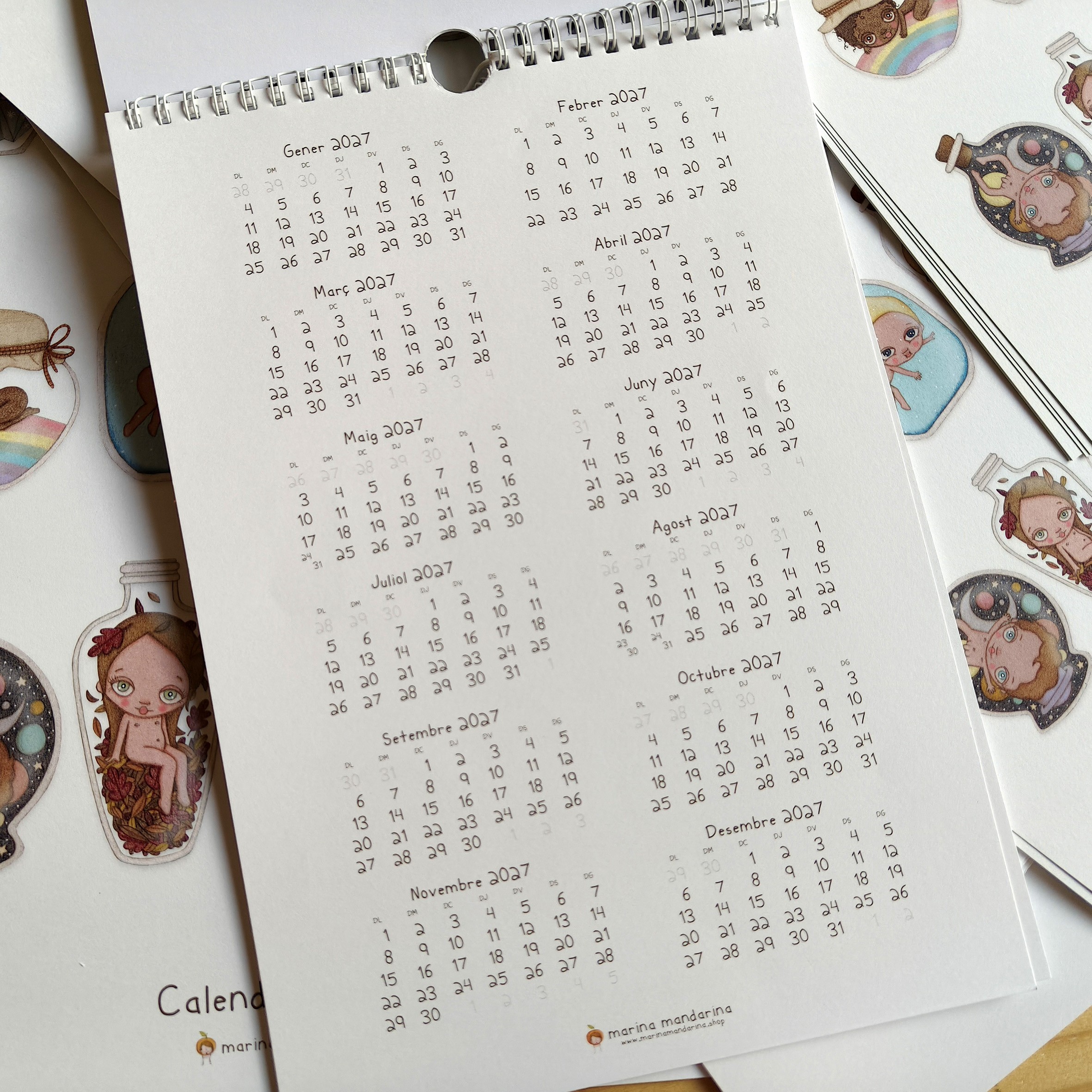 Todas las ilustraciones del calendario han estado dibujadas y pintadas a mano con lápices de colores.