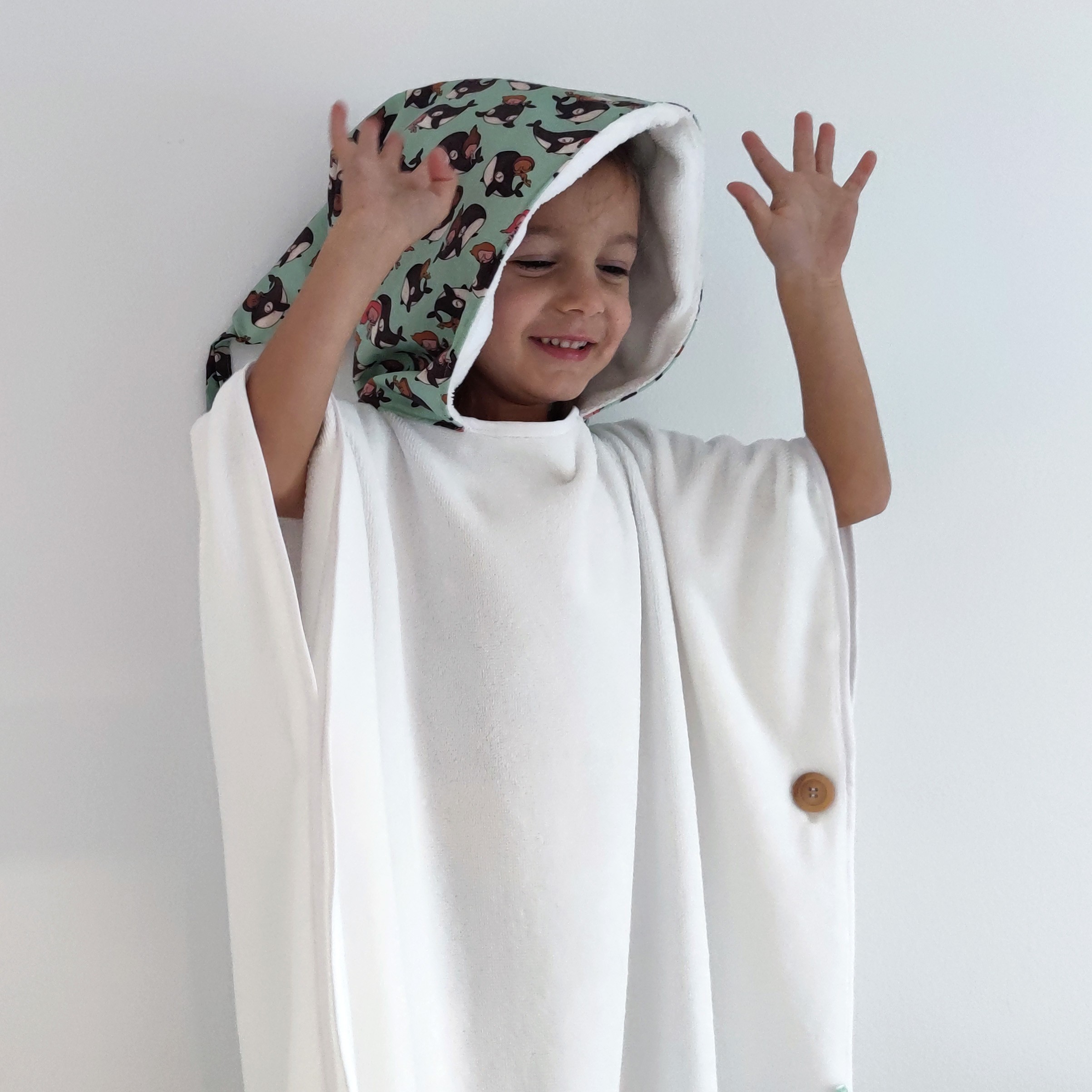 Capa de baño infantil , tipo poncho, con capucha (talla única de 3 a 8/9 años aproximadamente)