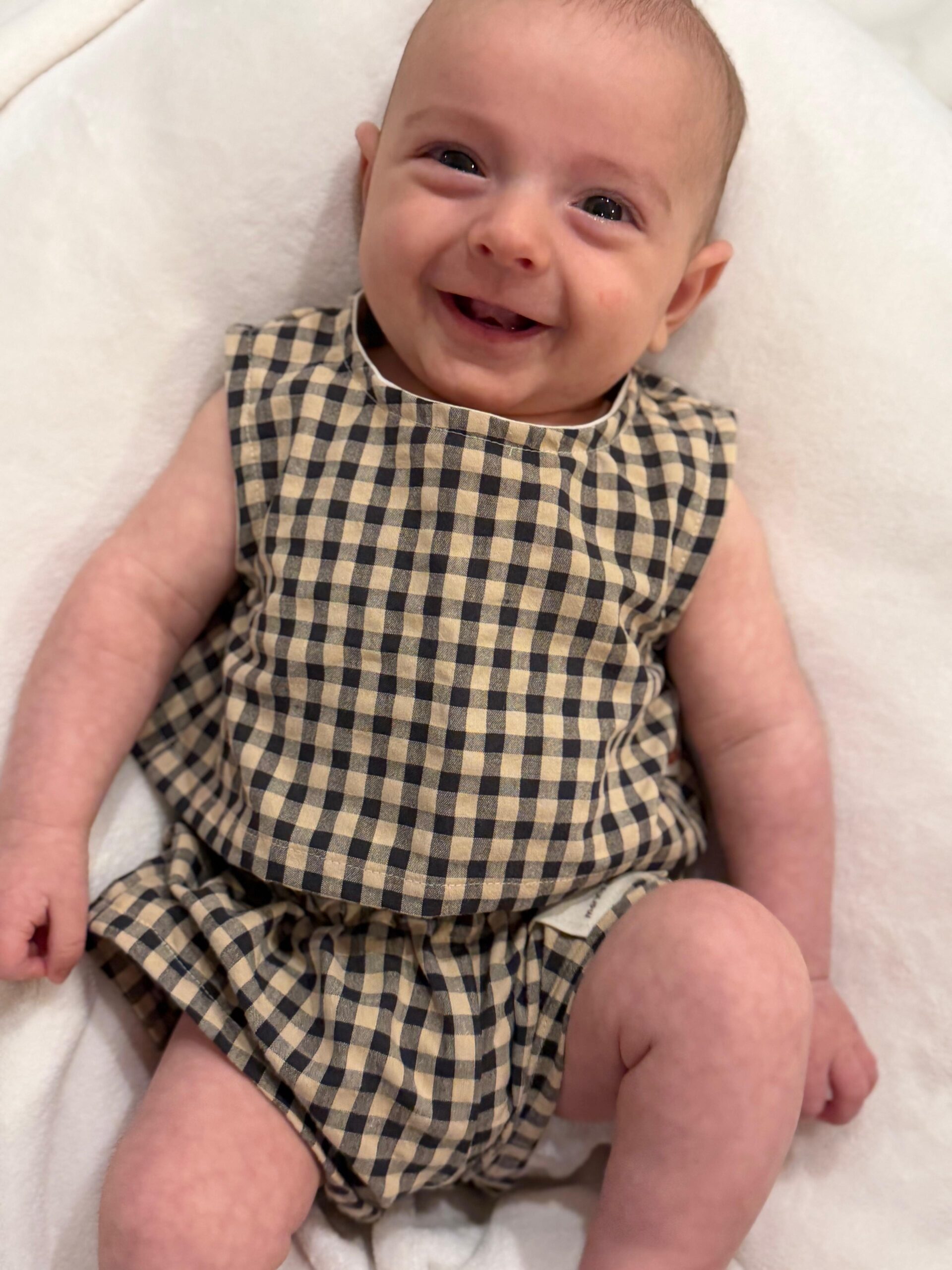 Un conjunto veraniego, práctico y ligero, confeccionado a mano y pensado para acompañar el movimiento y el juego con libertad.