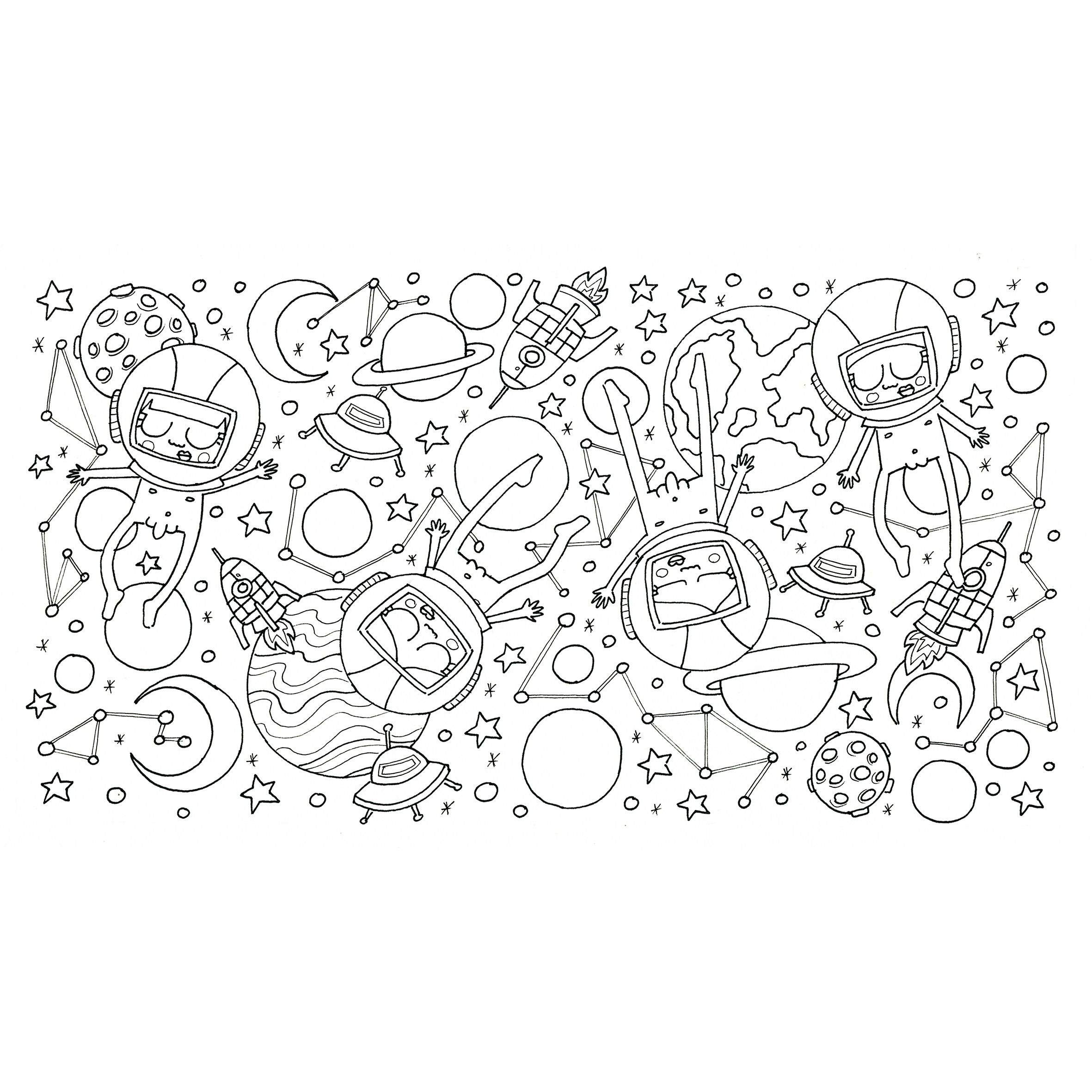 Un cuaderno compuesto de 20 ilustraciones de temáticas diferentes, como por ejemplo: el mar, un picnic, una fiesta de cumpleaños o un viaje por el espacio….