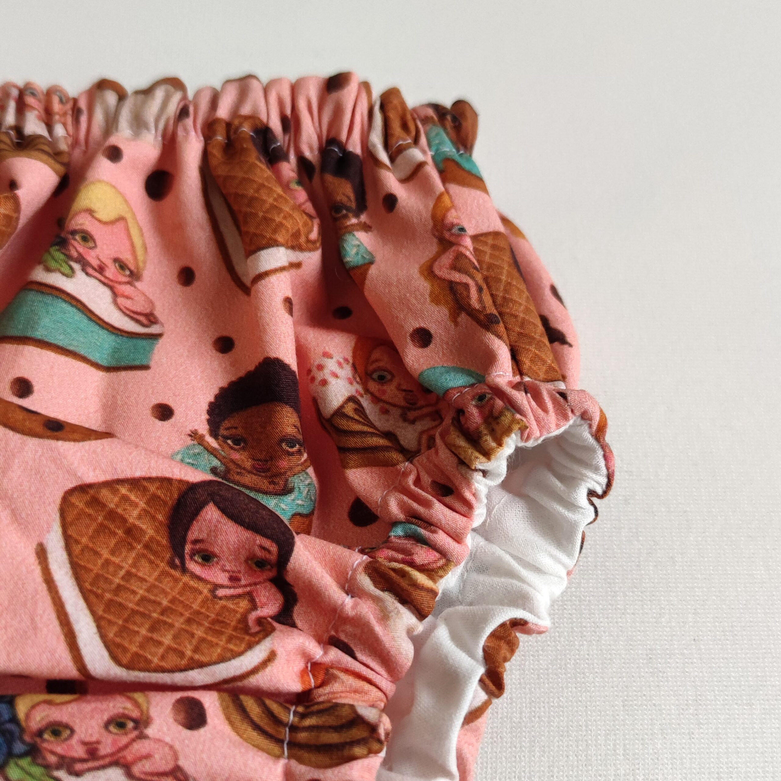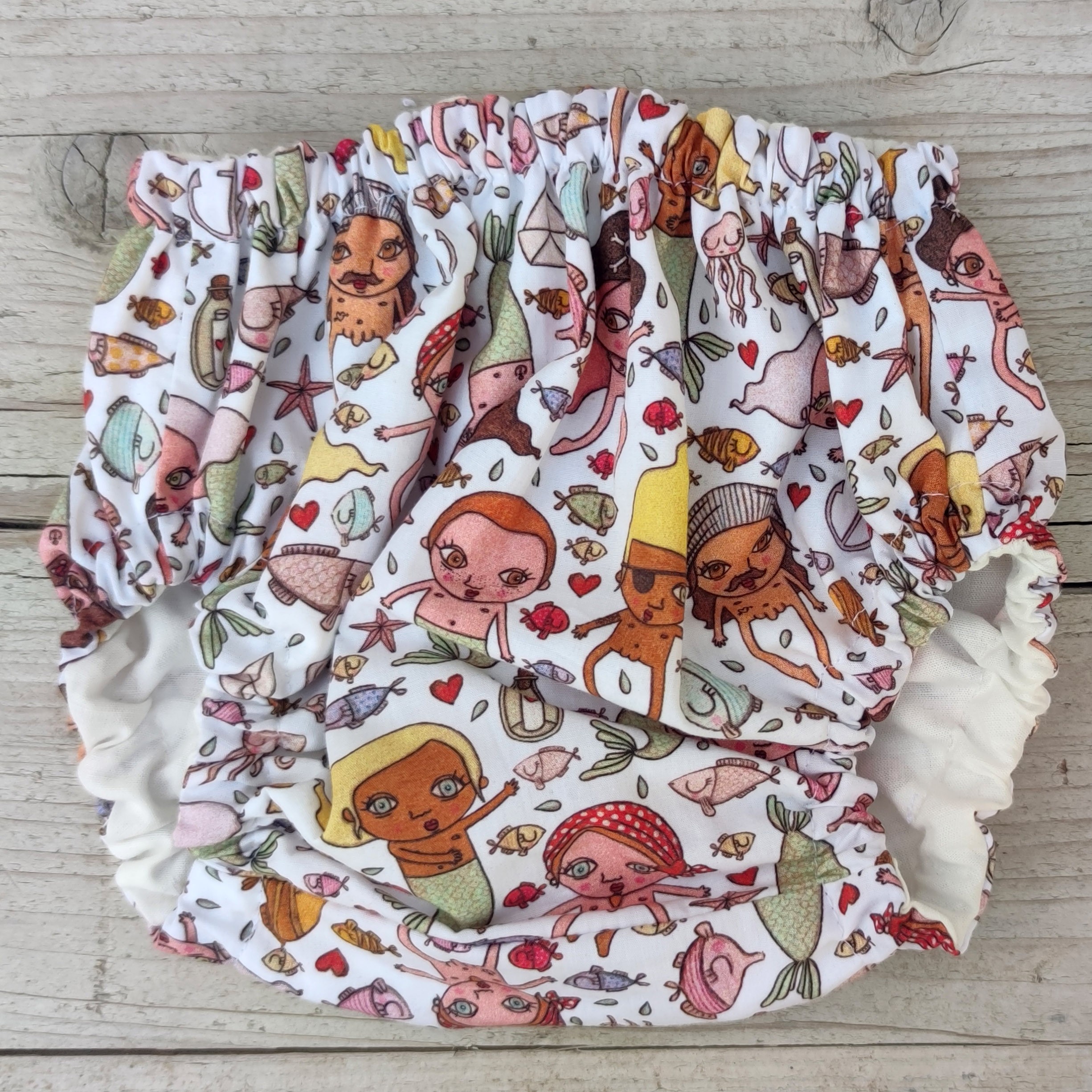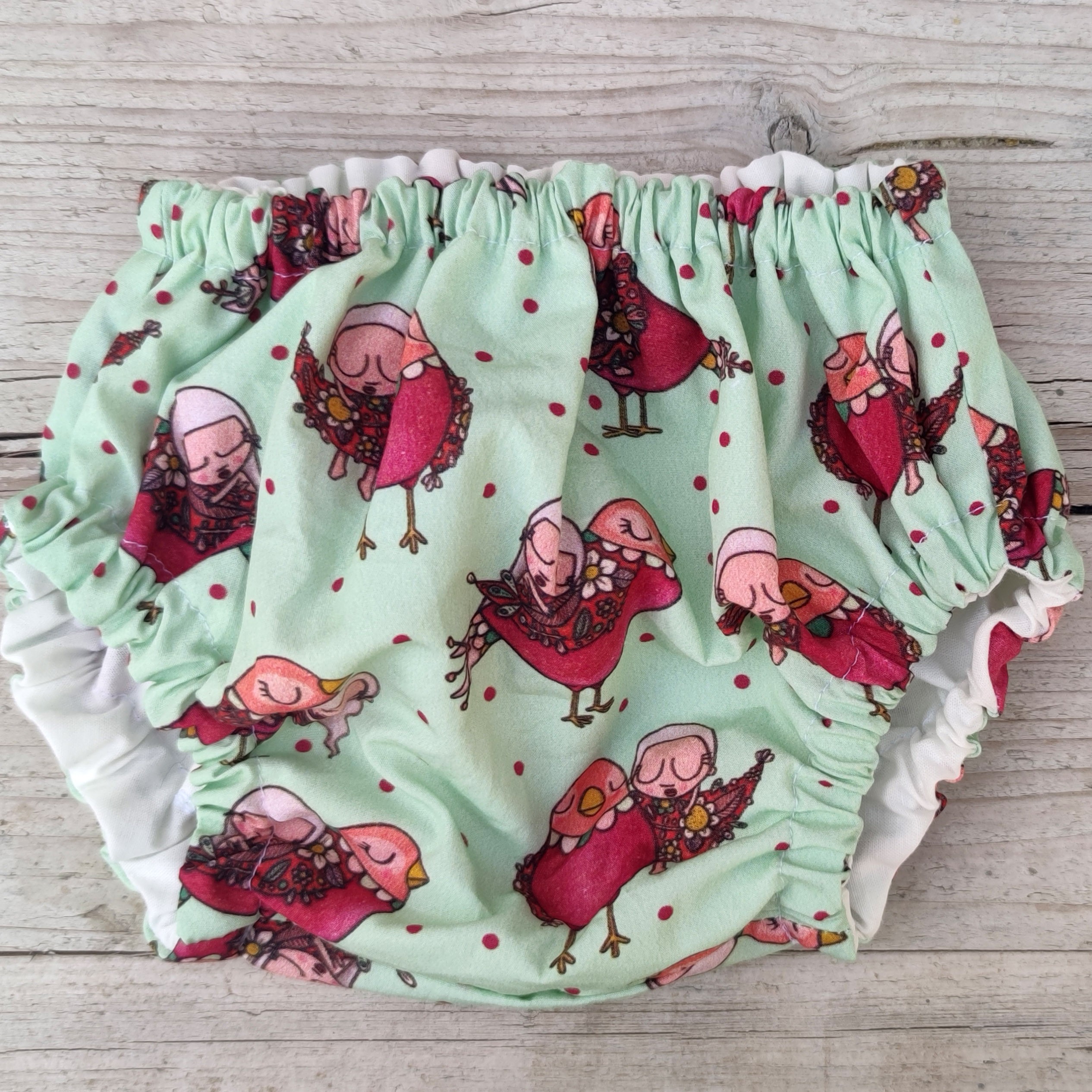 Culotte/cubre pañal elaborado con tejido de algodón 100% orgánico y forro interior blanco.