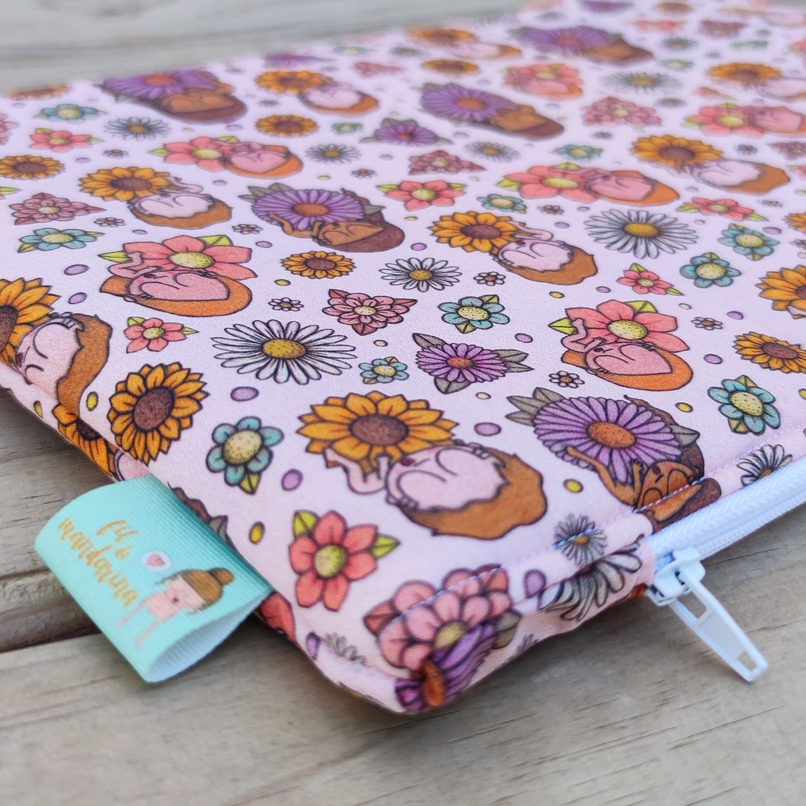 Neceser elaborado con tejido de algodón orgánico, plastificado por dentro y con relleno de guata para que quede acolchado.