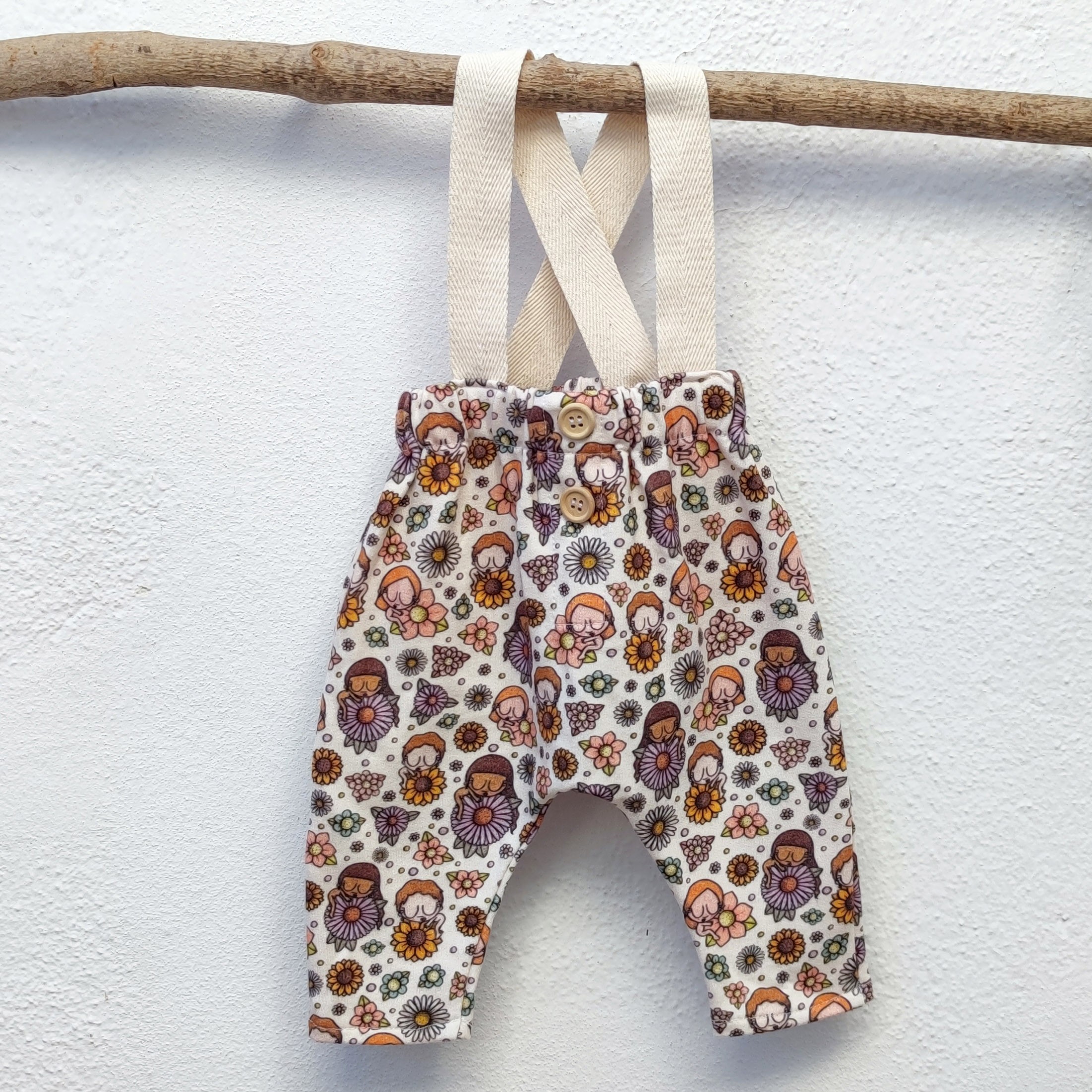 Pantalón de tiro alto de felpa de felpa suave de algodón 100% orgánico de 210gr/m2 con tirantes de cinta de algodón de color crudo.